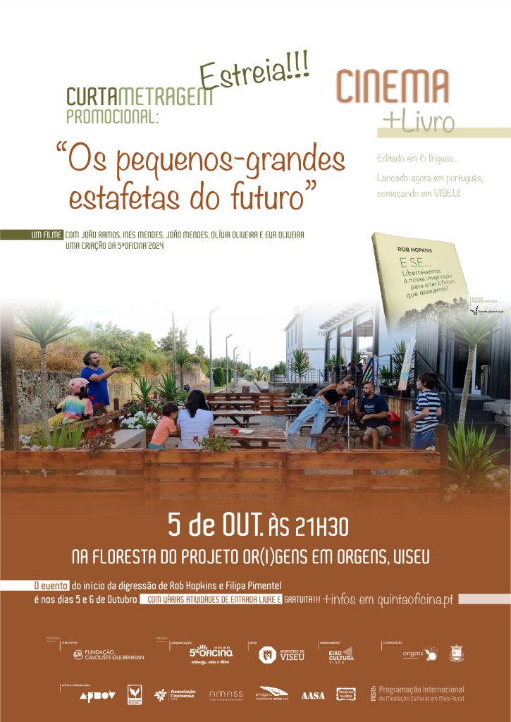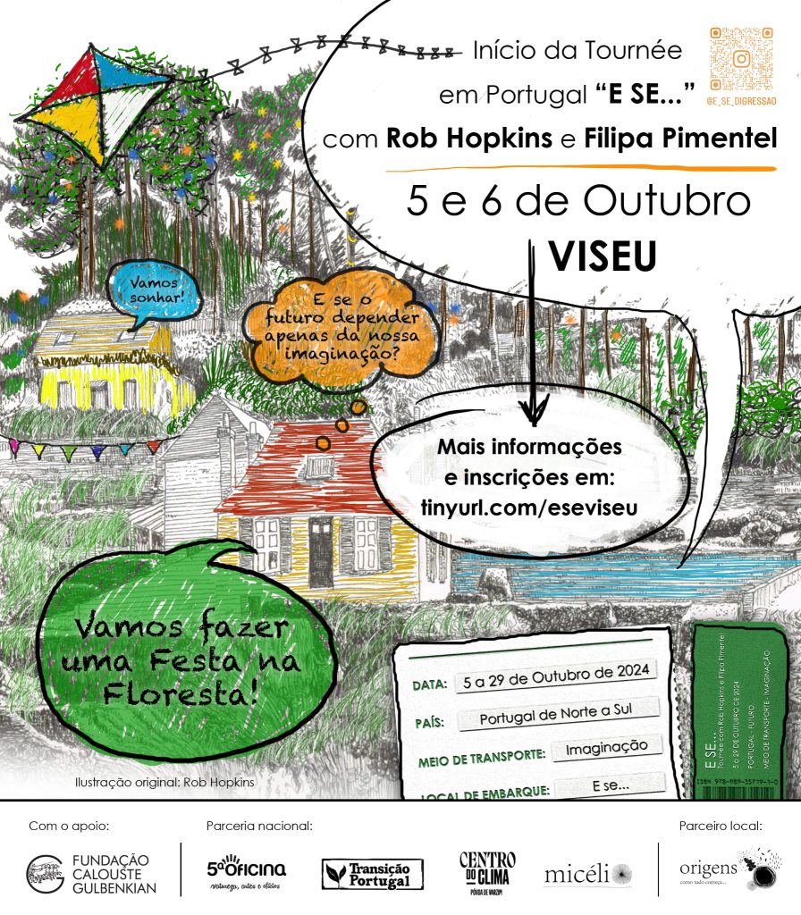 A 5ª Oficina abraça Rob Hopkins e Filipa Pimentel, na sua digressão em Portugal, de Norte a Sul, lançando e celebrando a publicação, para português, (publicado já em 6 línguas) do livro “E SE… LIBERTÁSSEMOS A NOSSA IMAGINAÇÃO PARA CRIAR O FUTURO QUE DESEJAMOS” de Rob Hopkins. O autor começou por Viseu, seguindo para a Gulbenkian, a Culturgest e passando por tantos outros locais de referência no nossa país… Cá em Viseu foi 5 e 6 de Outubro no espaço do projeto https://www.instagram.com/e_se_digressao/