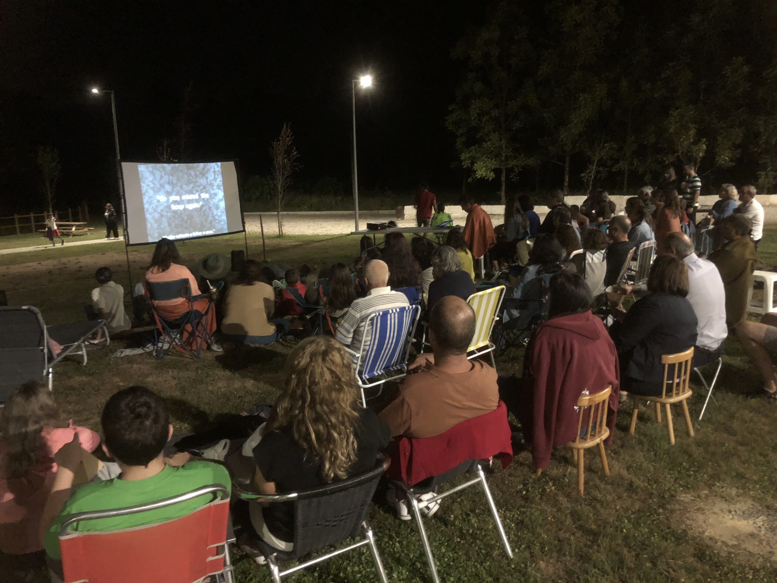 Cinema ao ar-livre na clareira da 5ªOficina, no Mosteirinho: